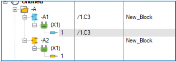 E3.series continúa evolucionando para ofrecer una experiencia de diseño más intuitiva y eficiente. Una de las últimas mejoras introducidas es la distinción de colores en el árbol de dispositivos para componentes de bloque colocados y no colocados.
